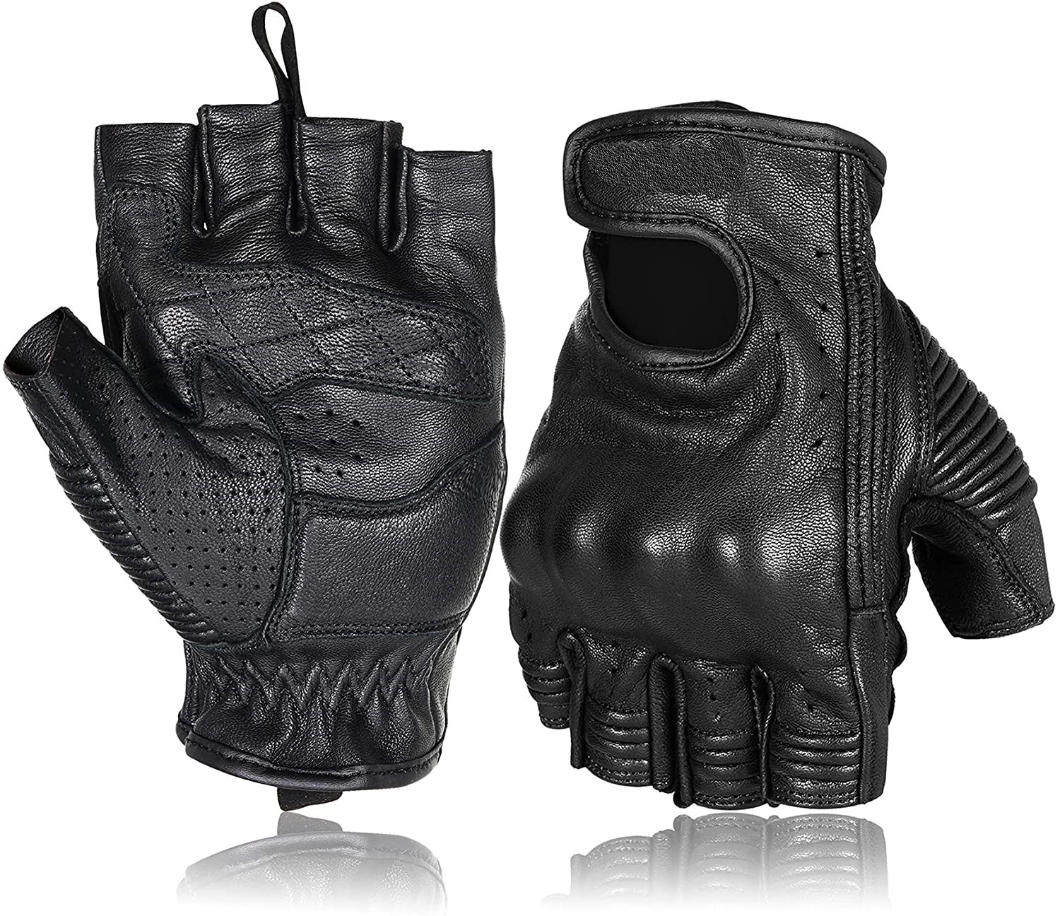 Leather Motorcycle Gloves for Men and Women Summer Breathable Fingerless Motorbike Riding Gloves with Hard Knuckle Protector
