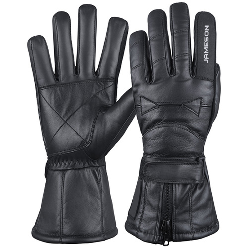 Leather Motorcycle Gauntlet Gloves with zippered cuffs